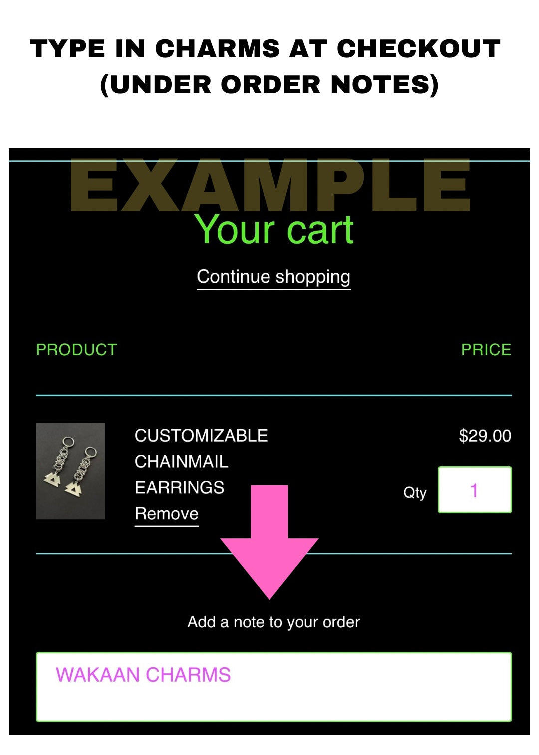 - TYPE IN CHARMS AT CHECK OUT (UNDER ORDER NOTES)